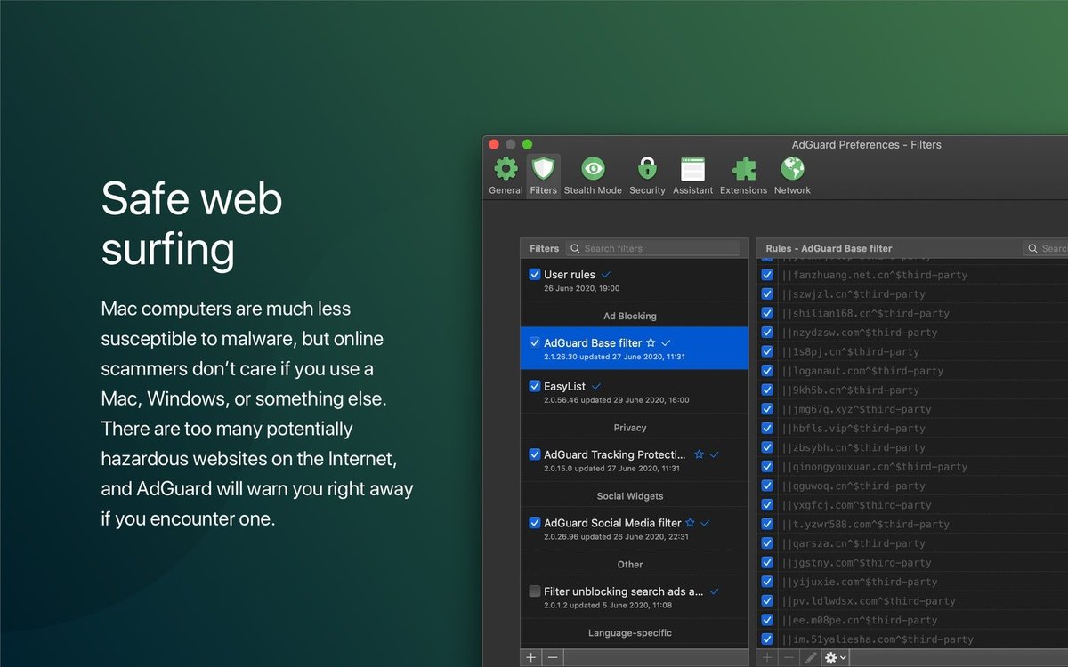"AdGuard for Mac隐私保护功能强大,帮我阻挡了很多跟踪器,使用体验一流。"