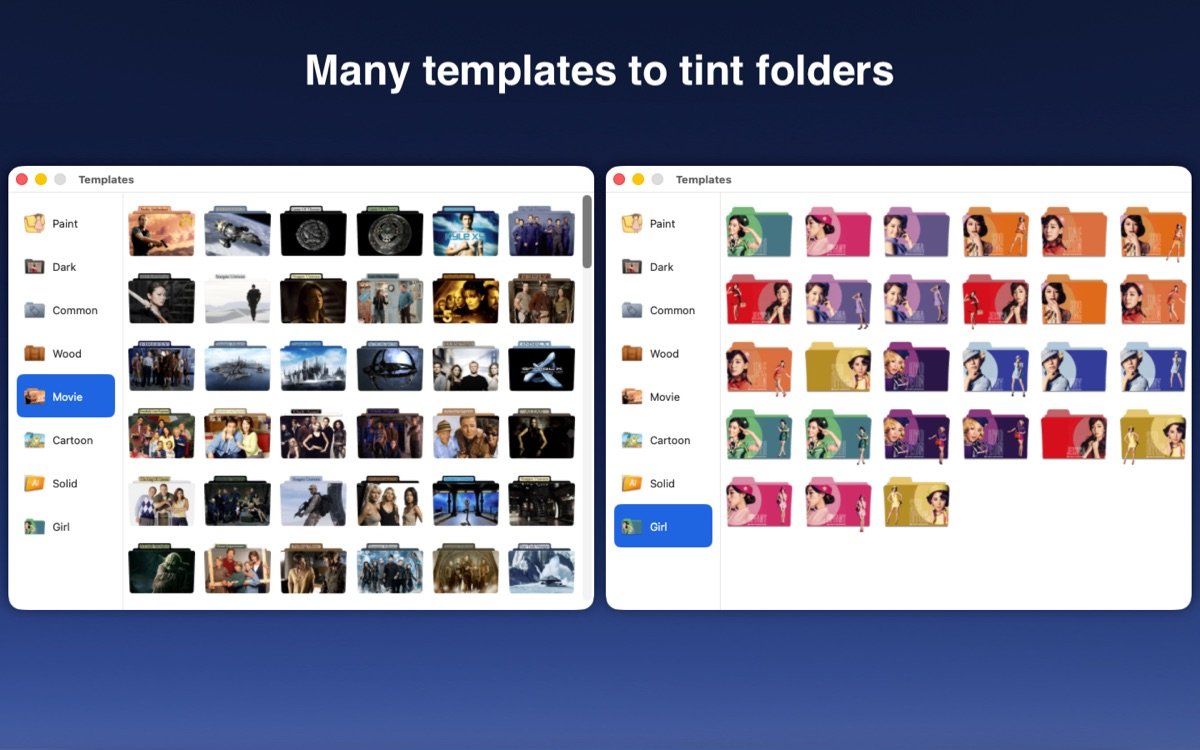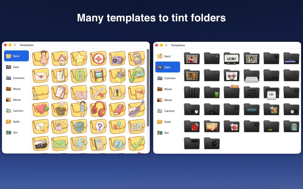 Color Folder for Mac是一款专注于Mac文件夹自定义的实用工具,它帮助用户通过更改图标颜色和样式来优化文件管理体验。无论你是需要快速区分工作文档、项目文件夹还是个人收藏,这款软件都能提供灵活的自定义选项,让你的桌面和Finder变得井井有条。内置数百种模板和颜色选择,用户可以轻松创建独特图标,同时支持图片导入,确保每位用户都能根据需求打造专属风格。作为Mac生态中的文件夹管理利器,它强调简便操作和高效输出,深受设计师、办公人士和普通用户的青睐。通过Color Folder for Mac,你能将平凡的蓝色文件夹转化为色彩斑斓的组织系统,提升整体工作流畅度。