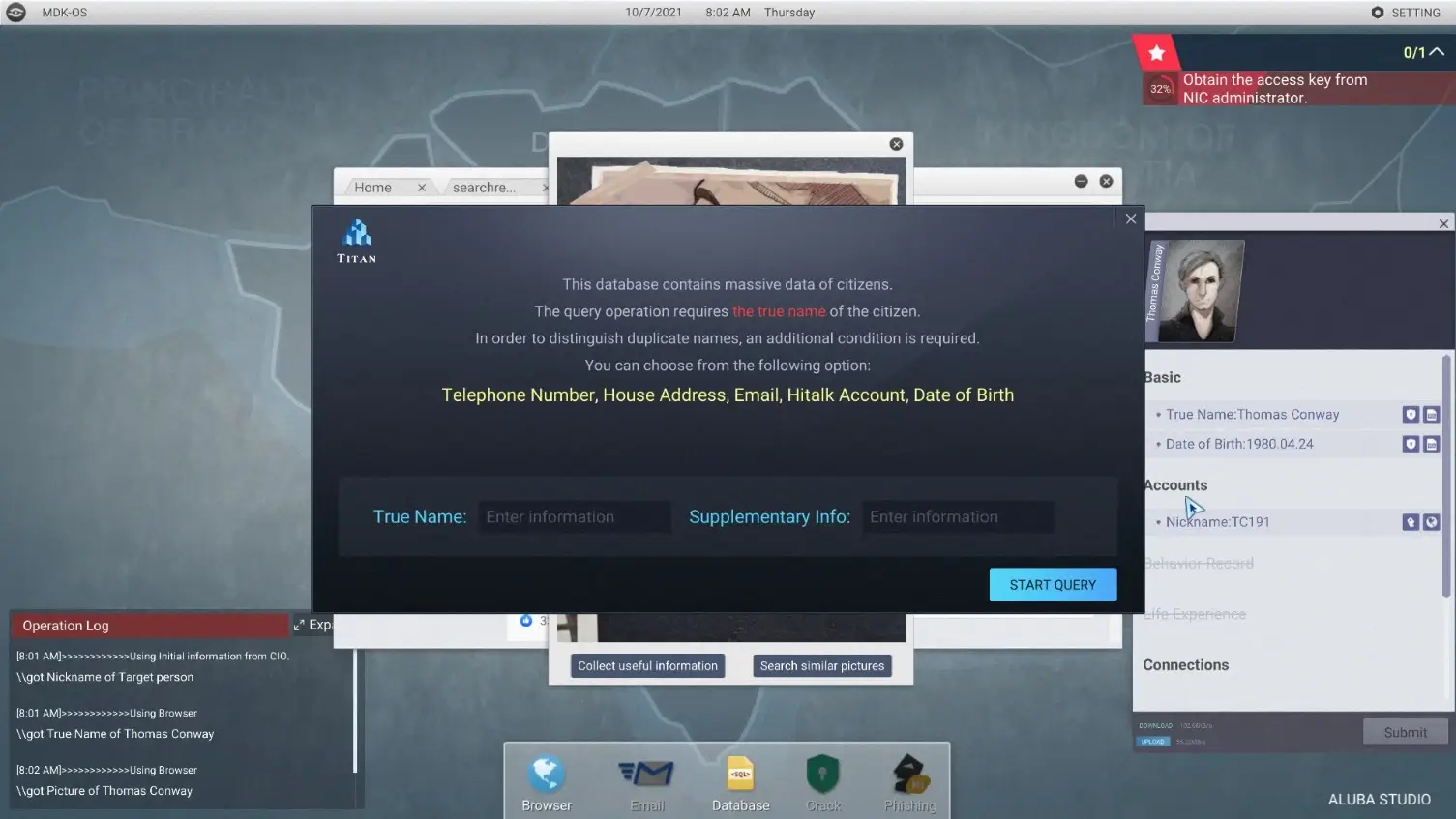 全网公敌 Cyber Manhunt for Mac 是一款融合黑客模拟与解谜冒险的独立游戏,聚焦大数据黑客入侵公民隐私泄露和网络暴力等现实社会议题。玩家化身为泰坦公司的黑客助手,接受各种任务,通过巧妙的社会工程学技巧追踪目标信息,逐步揭开事件背后的真相。这款游戏以macOS风格的图形界面呈现,操作流畅直观,适合喜欢叙事驱动解谜的Mac用户。游戏剧情源于真实事件改编,每一个章节都探讨当下热点如网络霸凌隐私侵犯和数据滥用,让玩家在娱乐中反思网络时代的道德困境。黑客模拟元素真实逼真,从简单的信息搜集到复杂的入侵操作,层层递进的难度设计增强了游戏的挑战性和趣味性。作为Mac平台的优质解谜冒险游戏,它不仅提供丰富的玩法,还通过原创音乐和全语音配音提升沉浸感,帮助玩家提升网络安全意识,避免隐私泄露风险。