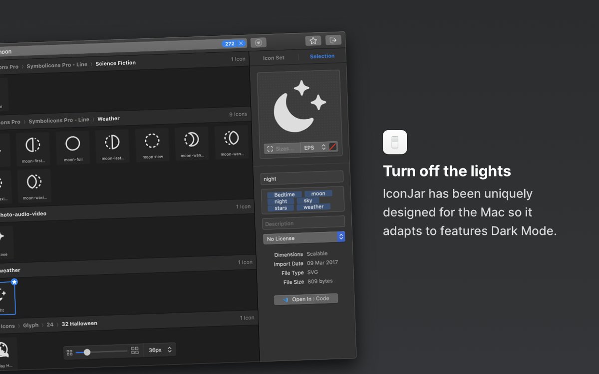 "IconJar 让我的设计流程顺畅许多,搜索速度快,导出方便。"