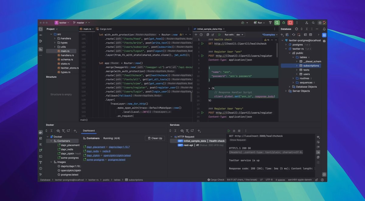 6. 扩展工具:HTTP客户端、Docker支持和数据库浏览器,扩展Rust应用到Web和数据领域。