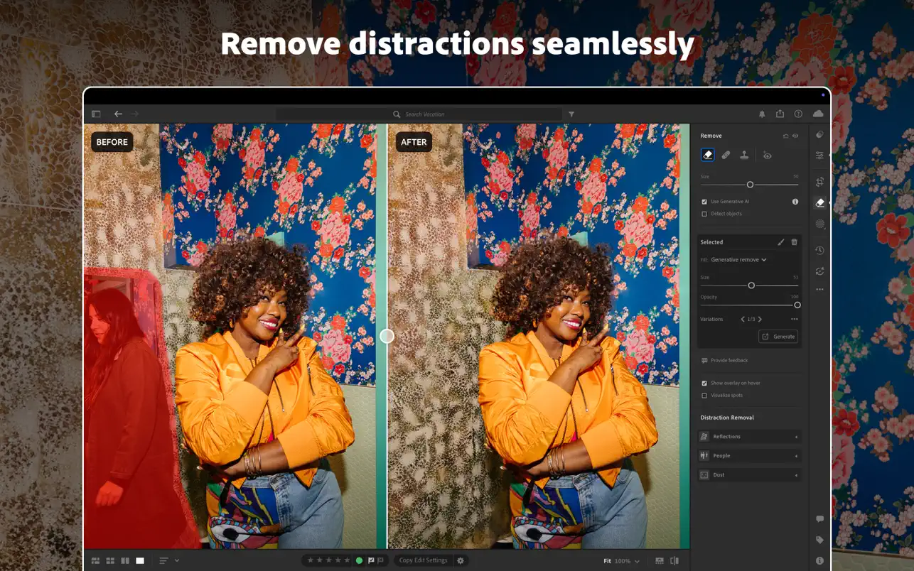 4. AI增强工具:内置生成式移除和智能主体选择,利用人工智能简化复杂编辑任务,提高照片质量。