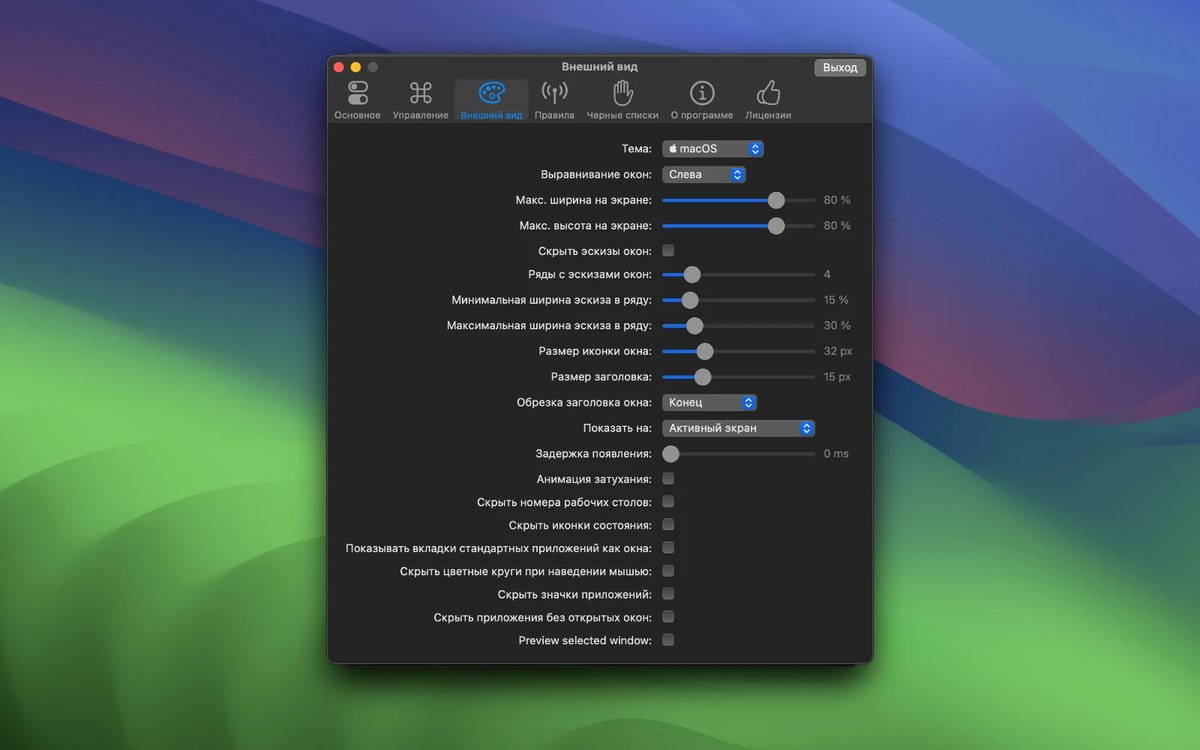 5. 黑名单功能排除特定应用,避免干扰窗口切换流程。