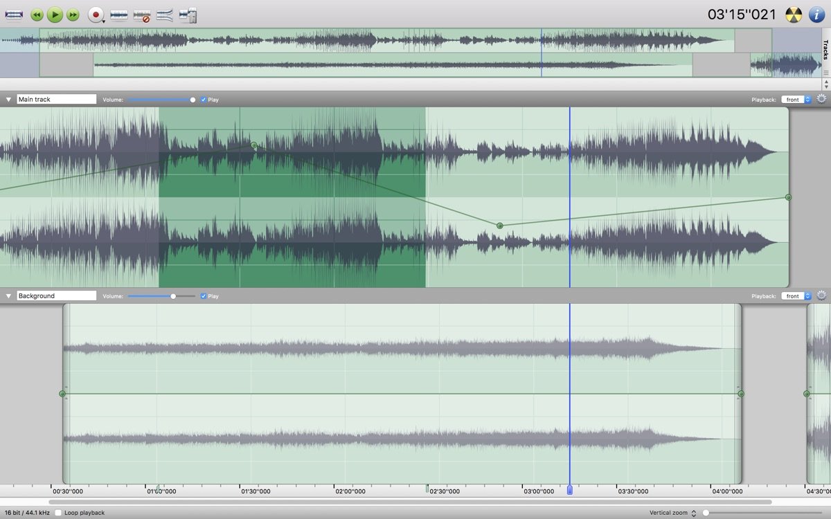 1. 多轨编辑:支持独立调整每个轨道的音量和声像,实时应用Audio Units效果,无需破坏性编辑。