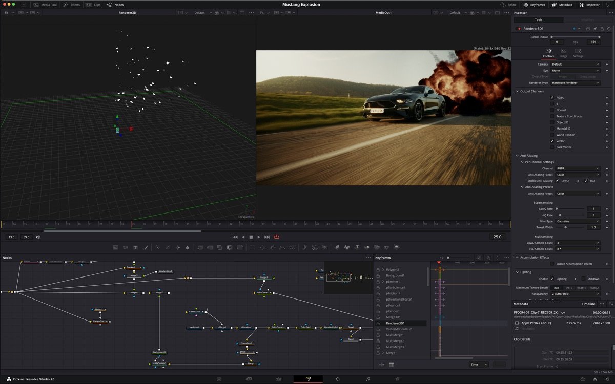 3. 视觉特效融合:集成Fusion页面,提供节点合成、粒子模拟和3D跟踪,助力复杂特效创作,无需切换软件。