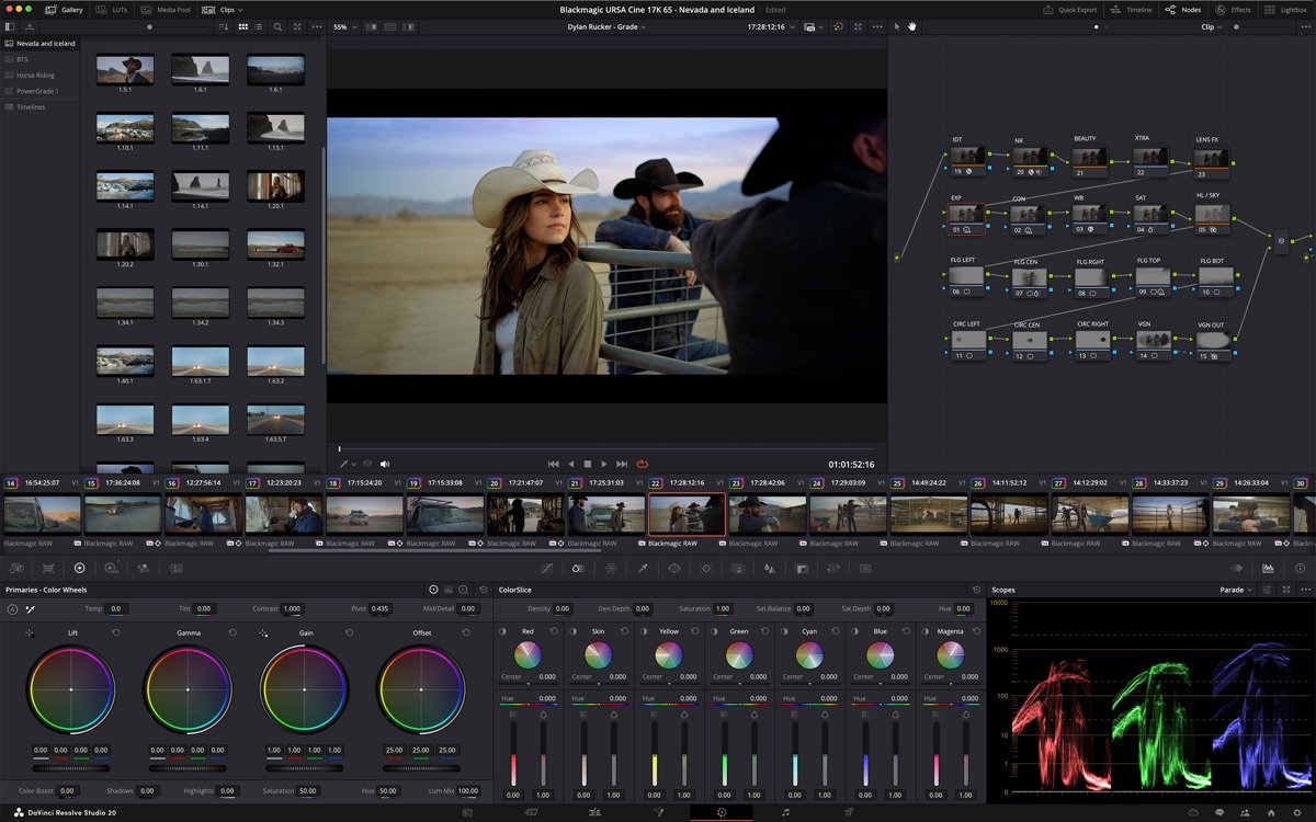 2. 专业调色工作流:内置节点式调色系统、HDR分级和曲线调整,结合Magic Mask AI自动抠像,让颜色校正更直观精确。