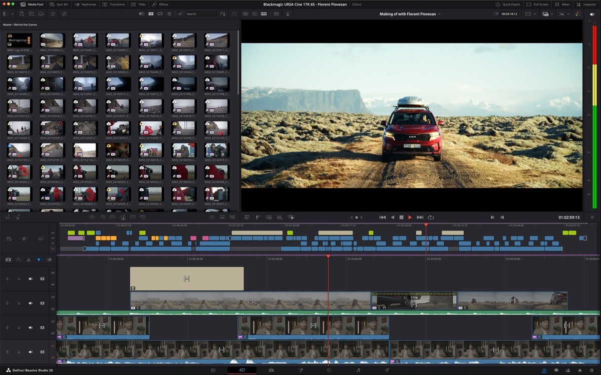 1. 精准视频剪辑:支持多轨道时间线编辑、智能剪切工具和AI辅助转场,实现流畅叙事构建,提升DaVinci Resolve Studio for Mac的剪辑效率。