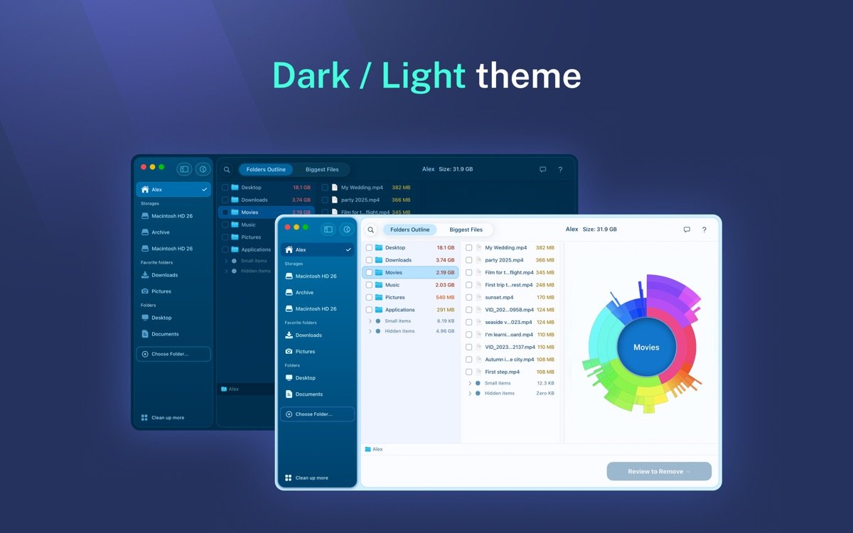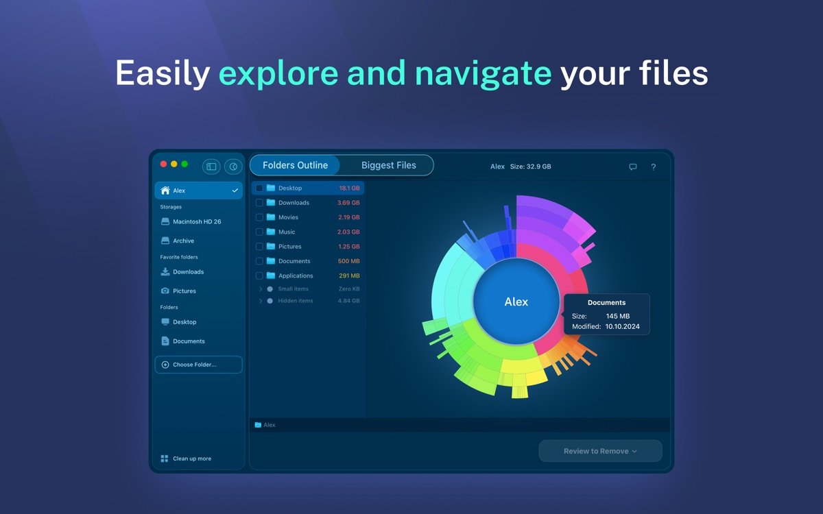 Disk Space Analyzer 6 for Mac 是一款专业的磁盘空间分析应用,专为Mac用户设计,帮助高效管理硬盘存储。通过先进的扫描技术,它能深入剖析磁盘使用情况,找出占用空间最多的文件和文件夹,让用户轻松释放硬盘空间。无论是日常文件积累还是系统缓存堆积,这款磁盘分析工具都能提供清晰的可视化图表,支持太阳爆发式显示模式,便于直观理解磁盘空间分布。同时,它集成快速清理功能,用户可直接删除无用文件,提升Mac整体运行速度。作为一款注重用户体验的硬盘空间优化软件,Disk Space Analyzer 6 支持多种语言,并兼容最新macOS版本,确保在各种Mac设备上顺畅运行。无论是新手还是资深用户,都能通过它实现高效的磁盘空间管理,保持硬盘整洁有序。