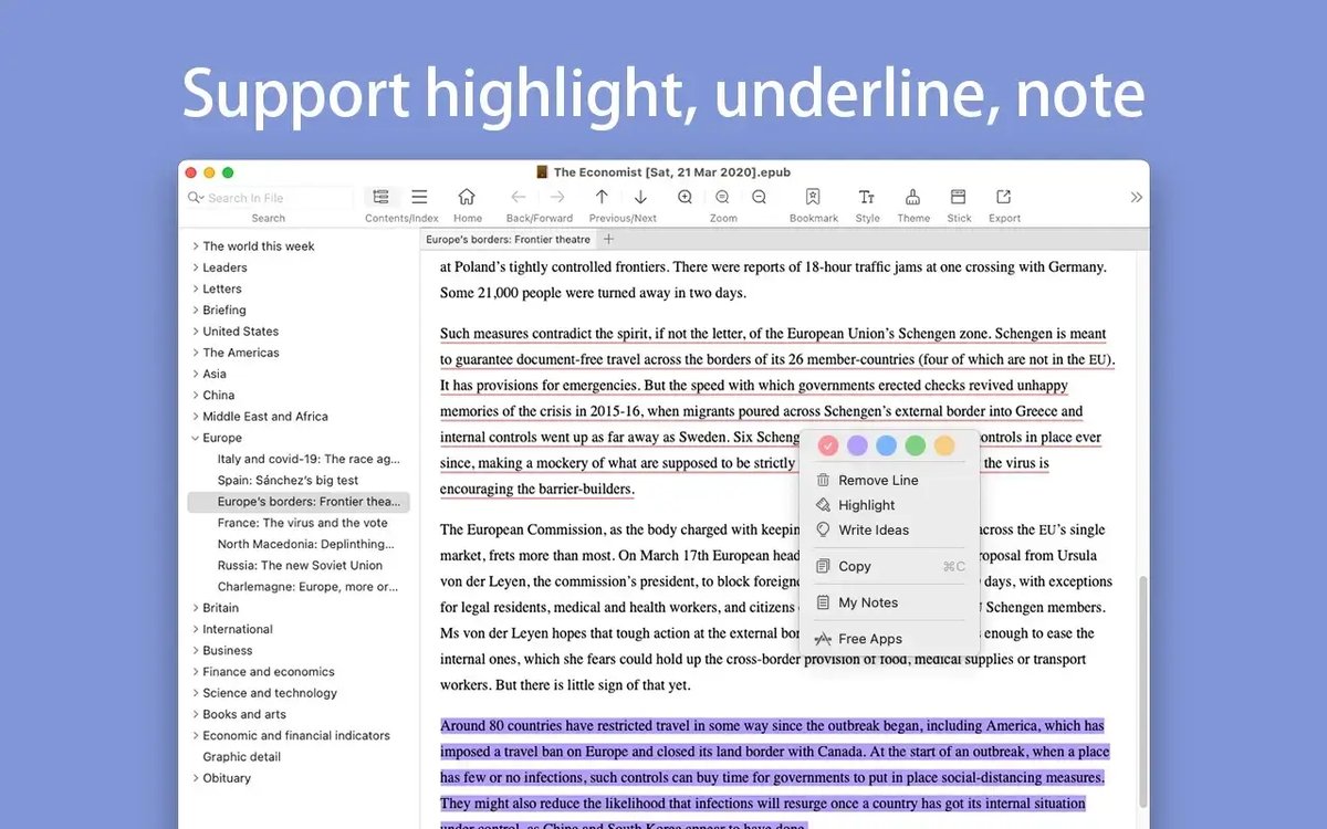 答:EPUB Reader for Mac 专注于EPUB和Mobi格式,如需阅读PDF,请使用专用PDF阅读器。