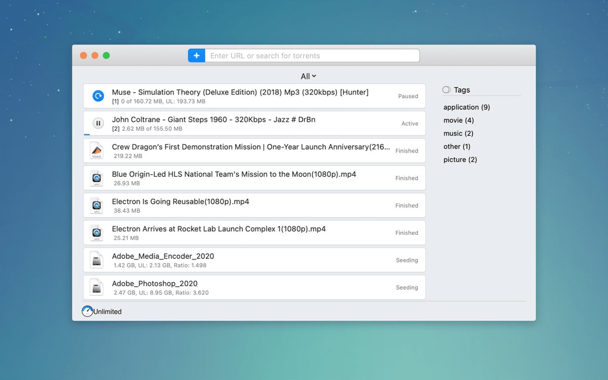 2. 内置Torrent客户端:直接搜索并下载Torrent文件,支持磁力链接,集成iTunes自动导入音乐视频。