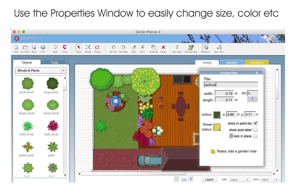 Garden Planner for Mac 是一款专为花园设计和景观规划打造的实用软件,它提供丰富的植物库和对象元素,让用户能够轻松创建个性化的花园布局。无论是初学者还是专业设计师,都可以通过简单的拖拽操作实现花园设计想法,软件内置超过1200种可自定义的植物符号和园林元素,支持路径围栏铺装和水景等功能,帮助优化花园规划并生成高品质输出图像。Garden Planner for Mac 强调用户友好性,结合3D视图功能,让花园设计过程更直观高效,广泛应用于家庭园艺和专业景观项目中,提升花园设计的创意和实用性。