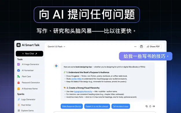 Gemini for Mac是一款Google开发的原生桌面AI助手应用,它直接嵌入Mac系统,让你随时随地都能轻松调用强大的AI能力。以前用浏览器访问Gemini总觉得有点麻烦,现在有了这个Mac版就完全不一样了。直接按下Option+Space键就能弹出聊天窗口,或者分享当前屏幕让AI看懂你正在做什么,给出最贴合的建议。无论是写邮件、分析数据还是脑暴新点子,它都能帮上大忙,还支持生成图像和视频,创意工作一下子就变得轻松许多。整个应用设计得特别贴合Mac使用习惯,操作起来流畅自然,适合学生、设计师和程序员等各种人群日常使用。