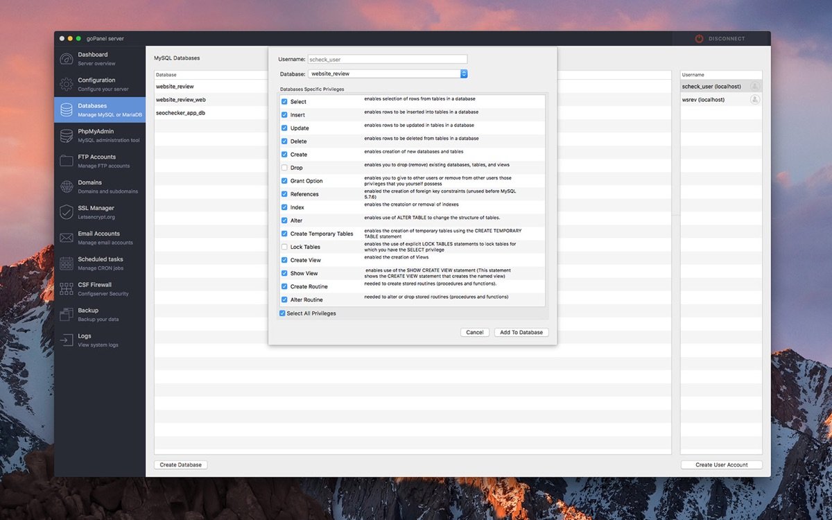 4. 数据库管理:创建无限MySQL或MariaDB用户和数据库,简化网页托管数据存储。