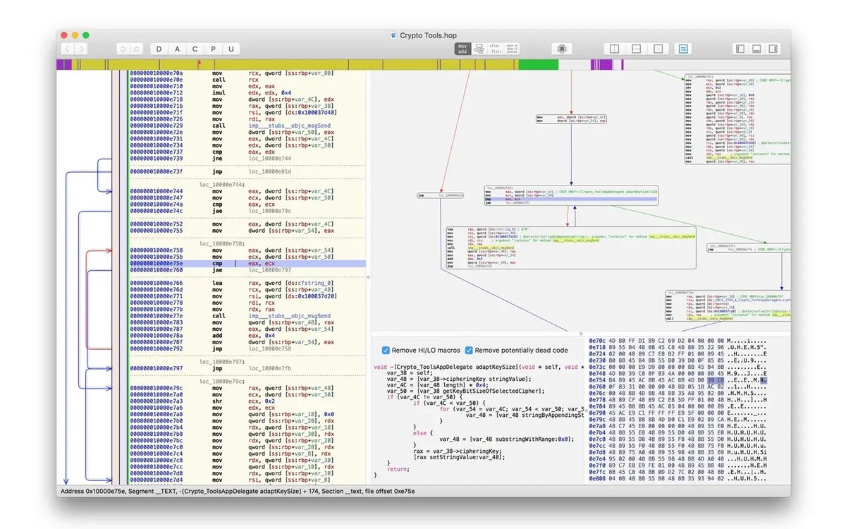 Hopper Disassembler for Mac 是一款专业的逆向工程工具,专为macOS和iOS平台优化设计。它能够处理多种二进制格式,包括Mach-O、PE和ELF文件,帮助开发者深入剖析编译后的代码。通过先进的反汇编和反编译功能,用户可以轻松理解复杂程序的内部逻辑,提升逆向工程效率。无论是调试应用、分析恶意软件还是学习汇编语言,Hopper Disassembler for Mac 都提供直观的界面和强大工具支持,深受专业人士青睐。