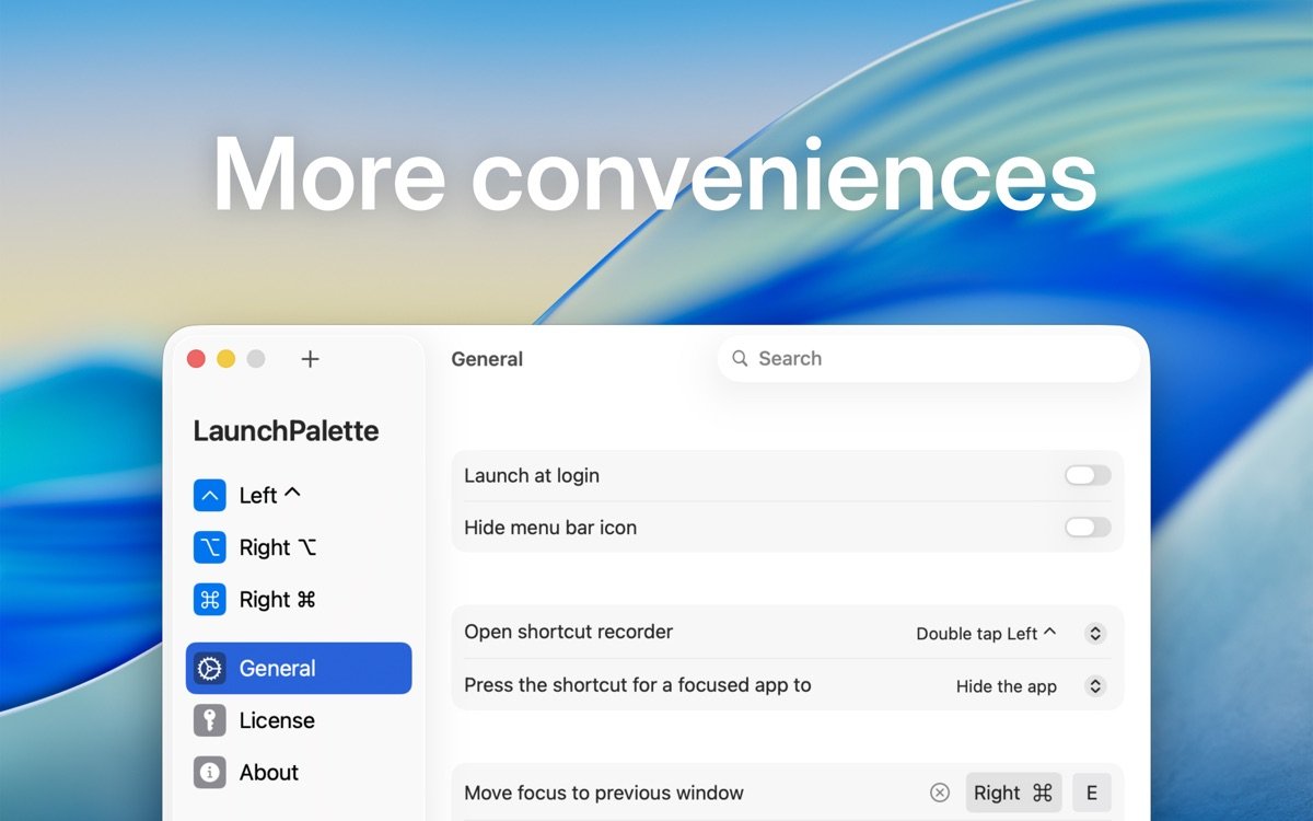 1. 分离修饰键支持,使用右Command键触发LaunchPalette,避免干扰左侧标准快捷键。