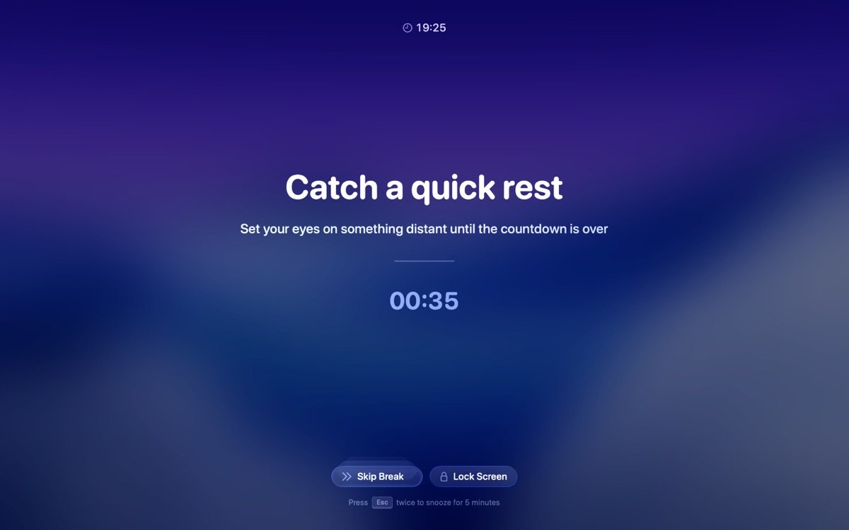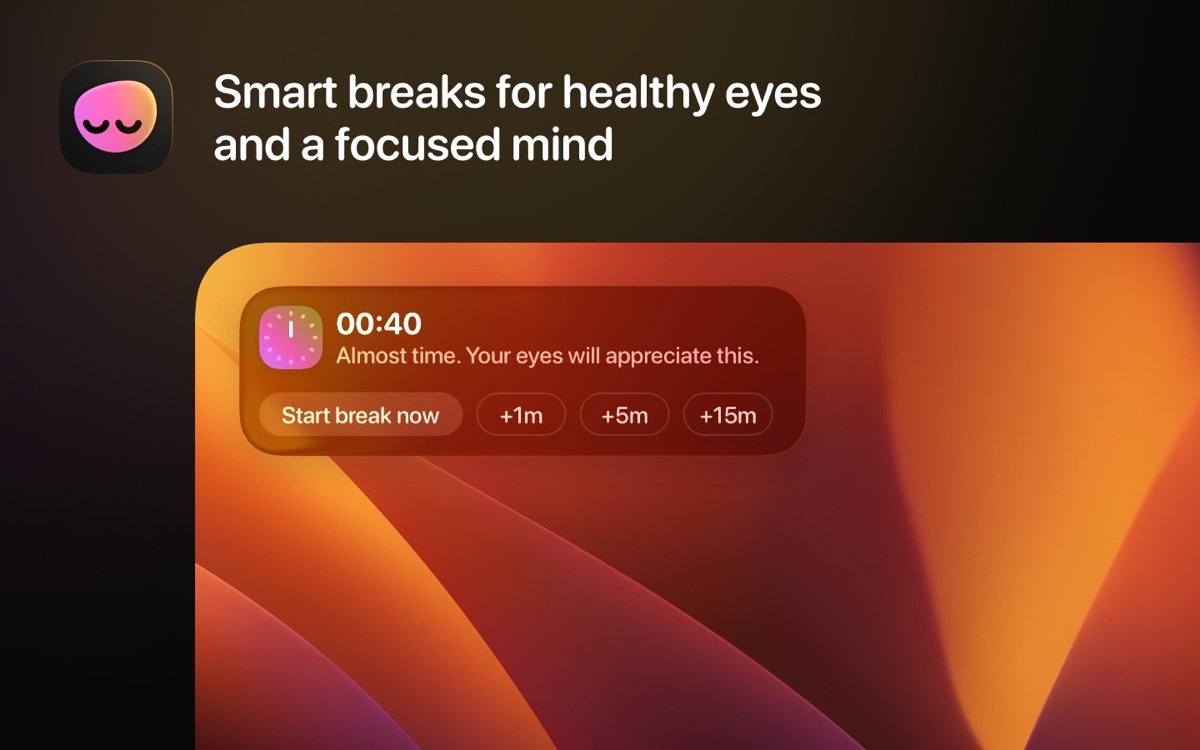 LookAway for Mac 其实就是那个安静藏在菜单栏里的小帮手,专门给长时间对着屏幕的Mac用户准备的。它不会突然跳出来吓你一跳,而是聪明地观察你的使用情况,到点就温柔提醒该休息了。眼睛干涩、脖子发酸、注意力慢慢散掉,这些常见问题它都能提前帮你挡住。很多人用完都说,工作效率没掉,反而感觉眼睛舒服多了,整个人也更有精神。
