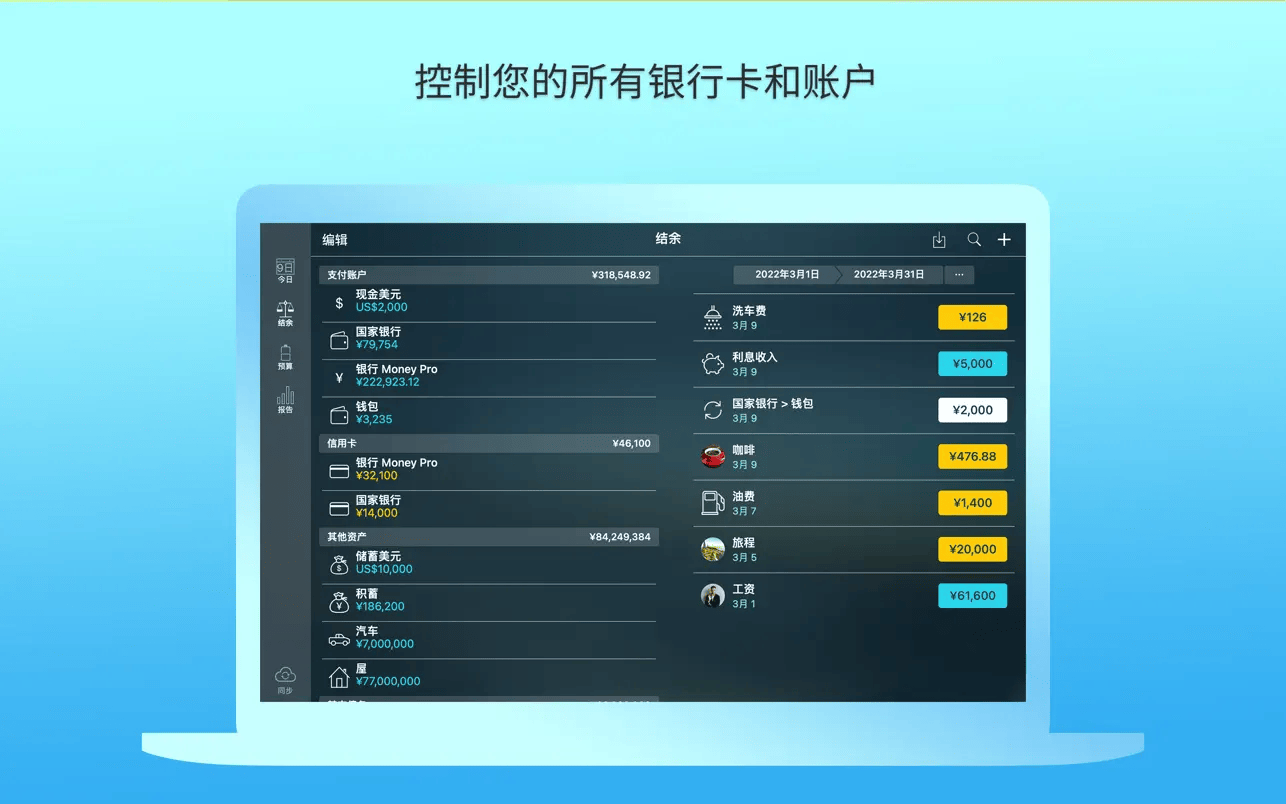 7. 多设备同步:通过 iCloud 或 Money Pro Sync 实现 Mac、iPhone 和 iPad 间数据无缝共享。