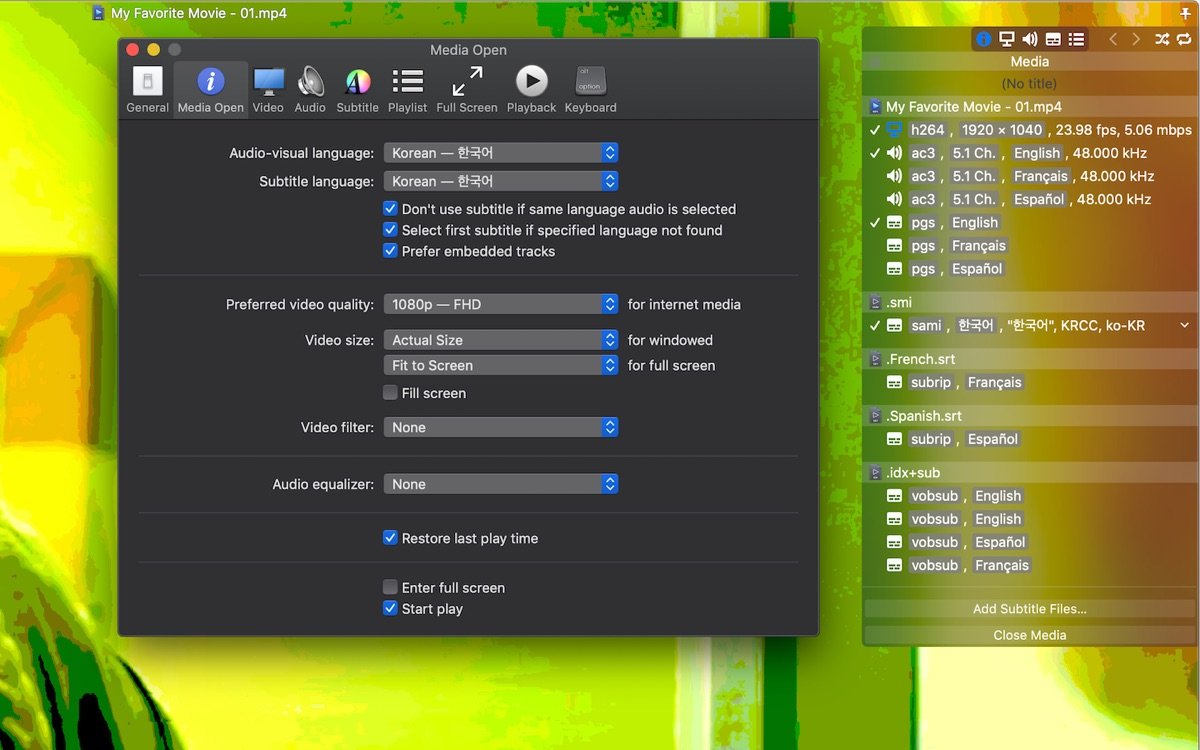 6. 个性化媒体偏好设置,默认语言轨道、滤镜、均衡器和续播位置一键应用,操作起来省时省力