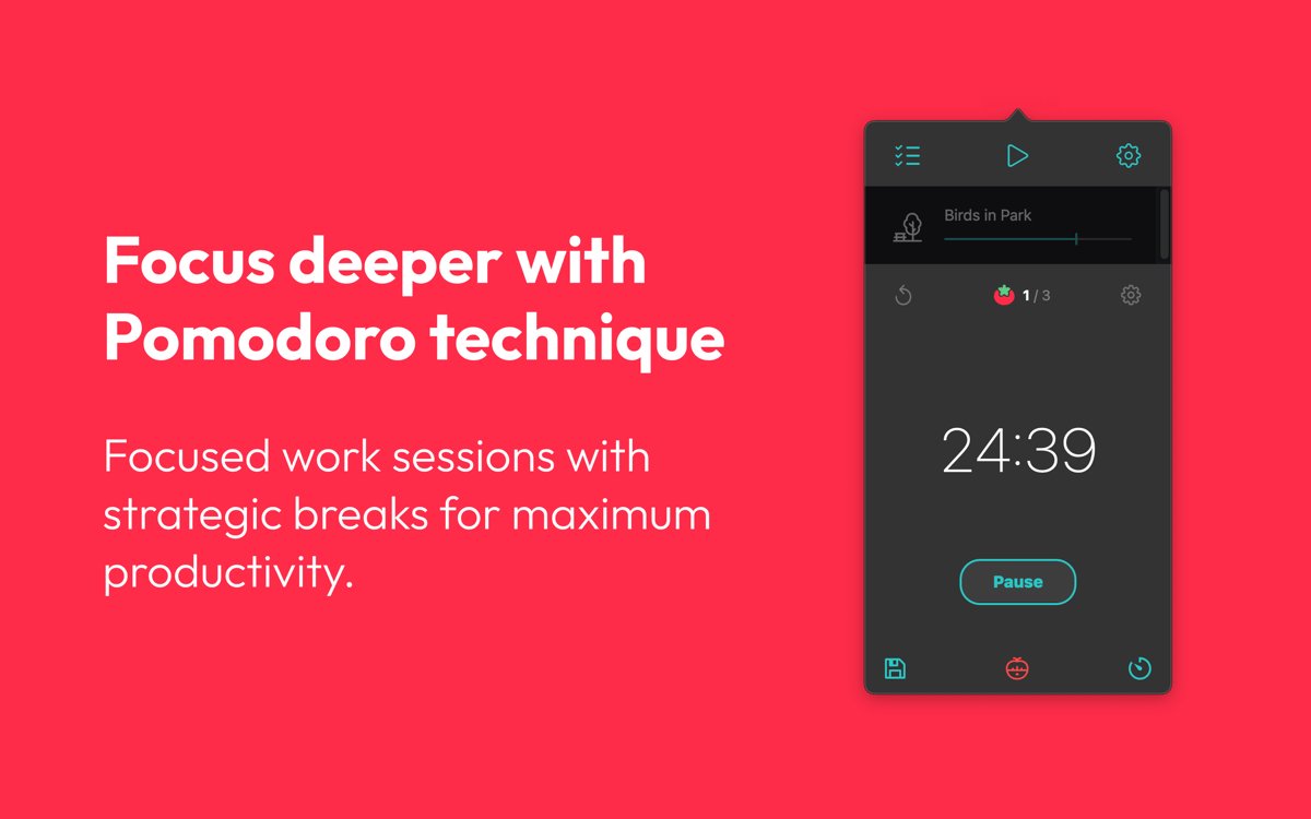 3. 内置自动暂停计时器和 Pomodoro 功能帮助用户管理时间优化工作效率和睡眠质量。