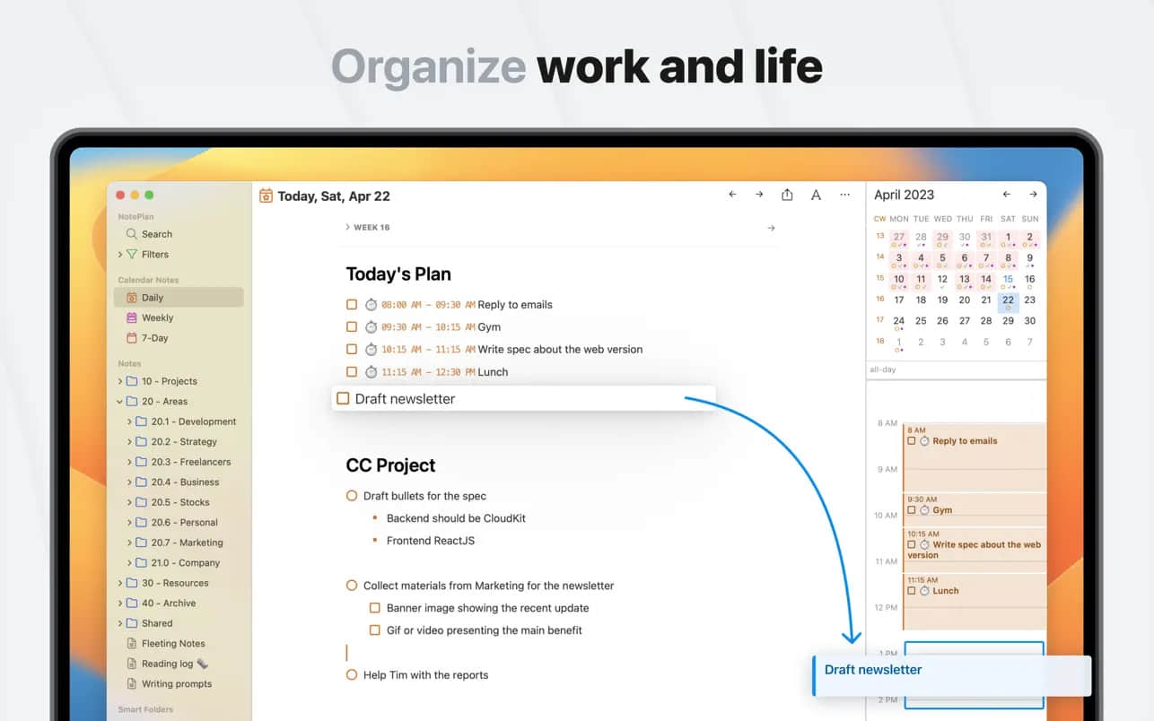 5. AI辅助工具:内置NotePlan AI,可生成内容、重写笔记和创建摘要,提升写作效率。
