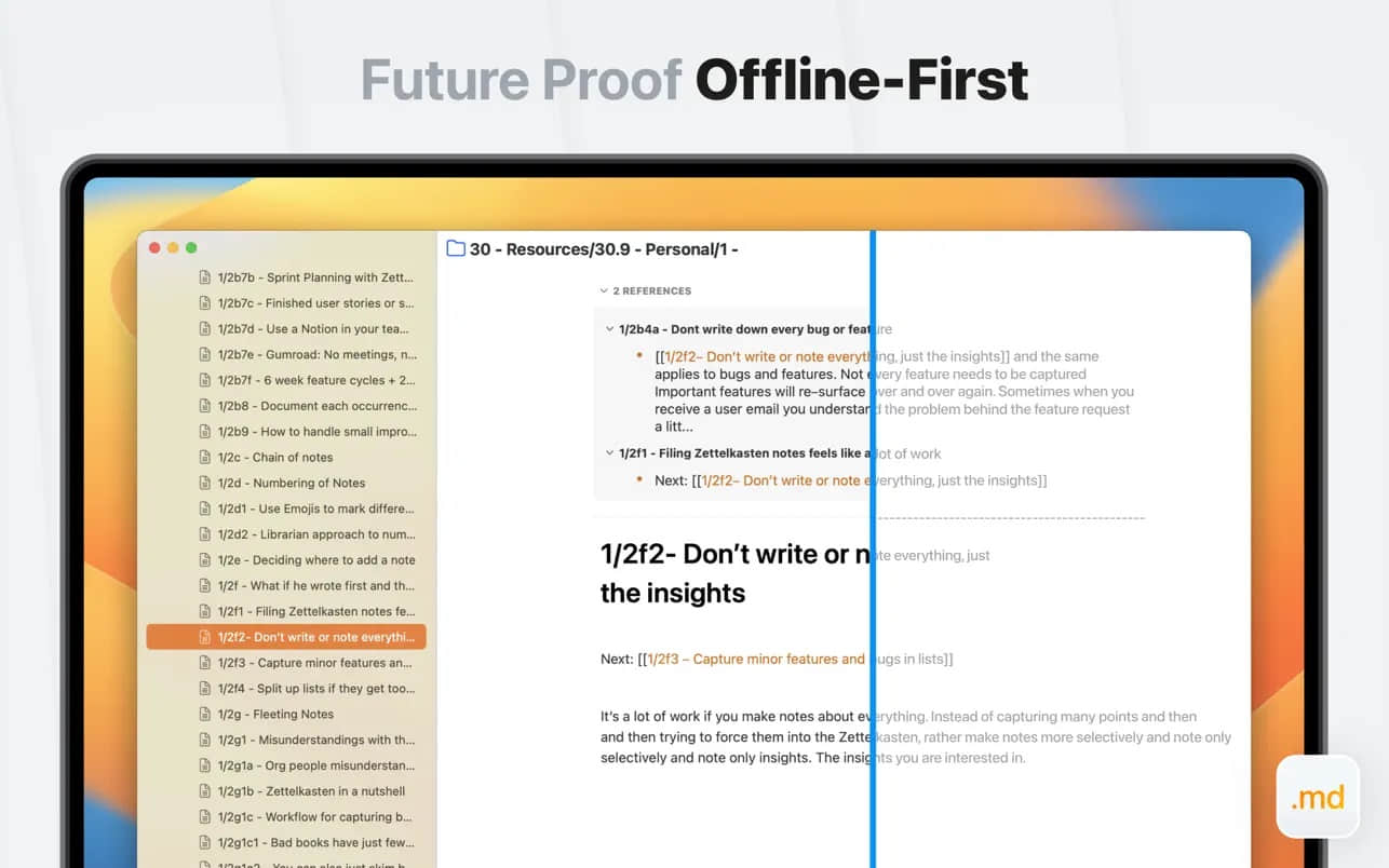 3. 知识网络构建:支持双向笔记链接、文件夹组织和Zettelkasten系统,轻松创建个人知识库。