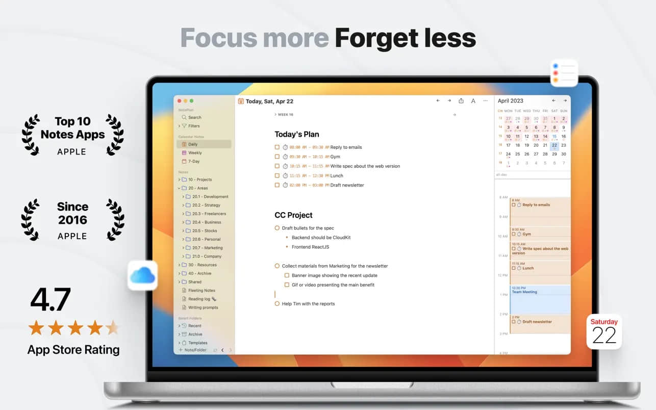 NotePlan 自2016年起便被苹果评为顶级笔记应用之一,早期版本聚焦于基本任务和笔记整合。2017年推出初代产品后,开发者持续优化用户体验。2020年11月24日,NotePlan 3 正式发布,引入双向链接和高级过滤功能,大幅提升生产力。多年来,软件通过每月更新响应用户反馈,从独立开发者项目成长为跨平台工具,支持Mac、iOS和Web版本。至今,它已帮助全球专业人士管理繁忙日程,强调隐私和速度,成为Markdown爱好者的首选。
