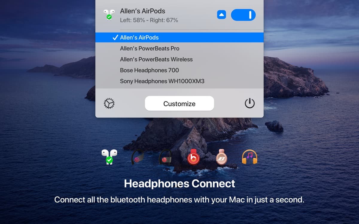 "一键连接AirPods超级实用推荐给所有Mac用户。"