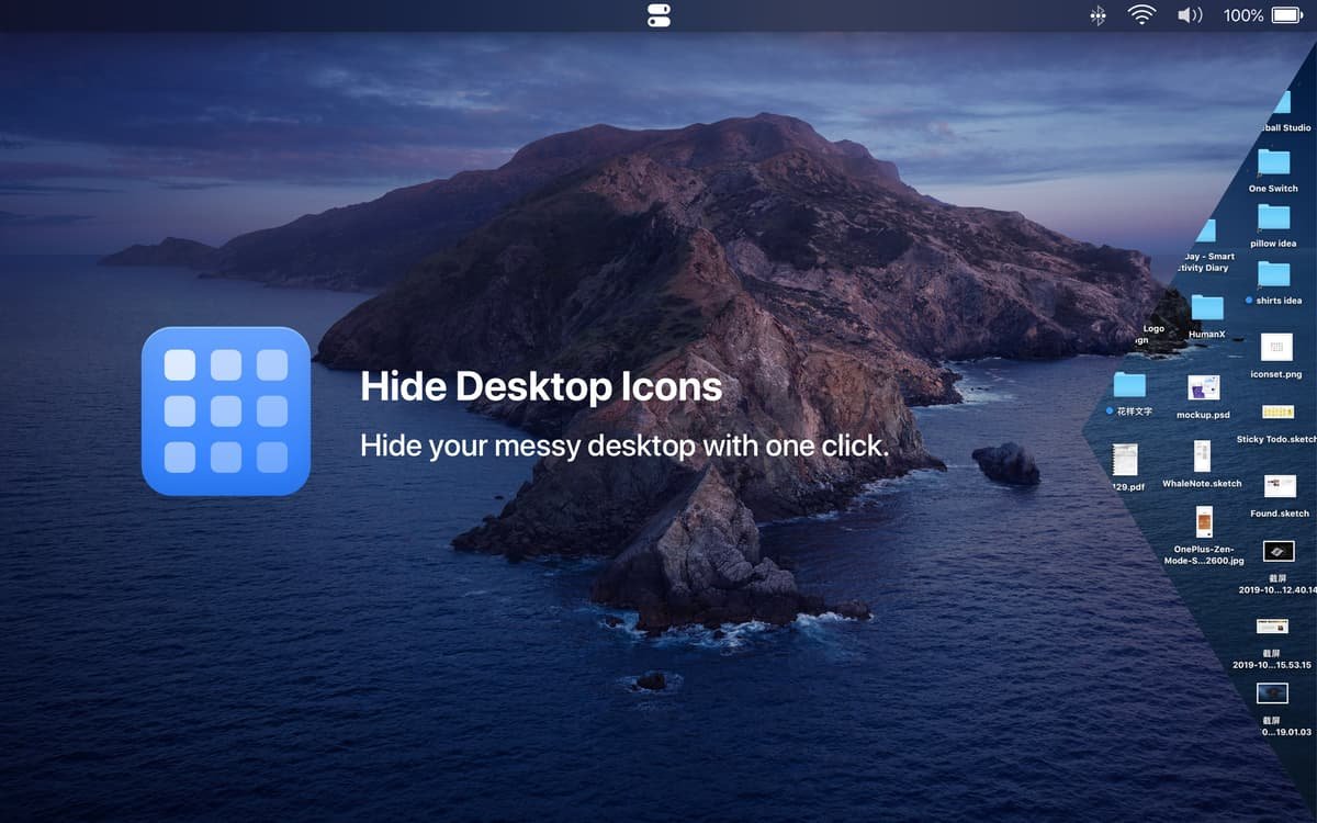 1. 隐藏桌面图标一键清理杂乱桌面适合截屏或保持整洁。