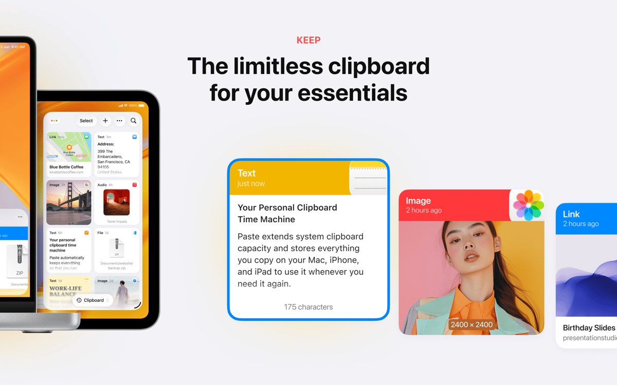 "Paste for Mac 完美集成Apple生态同步稳定帮我节省大量时间。"