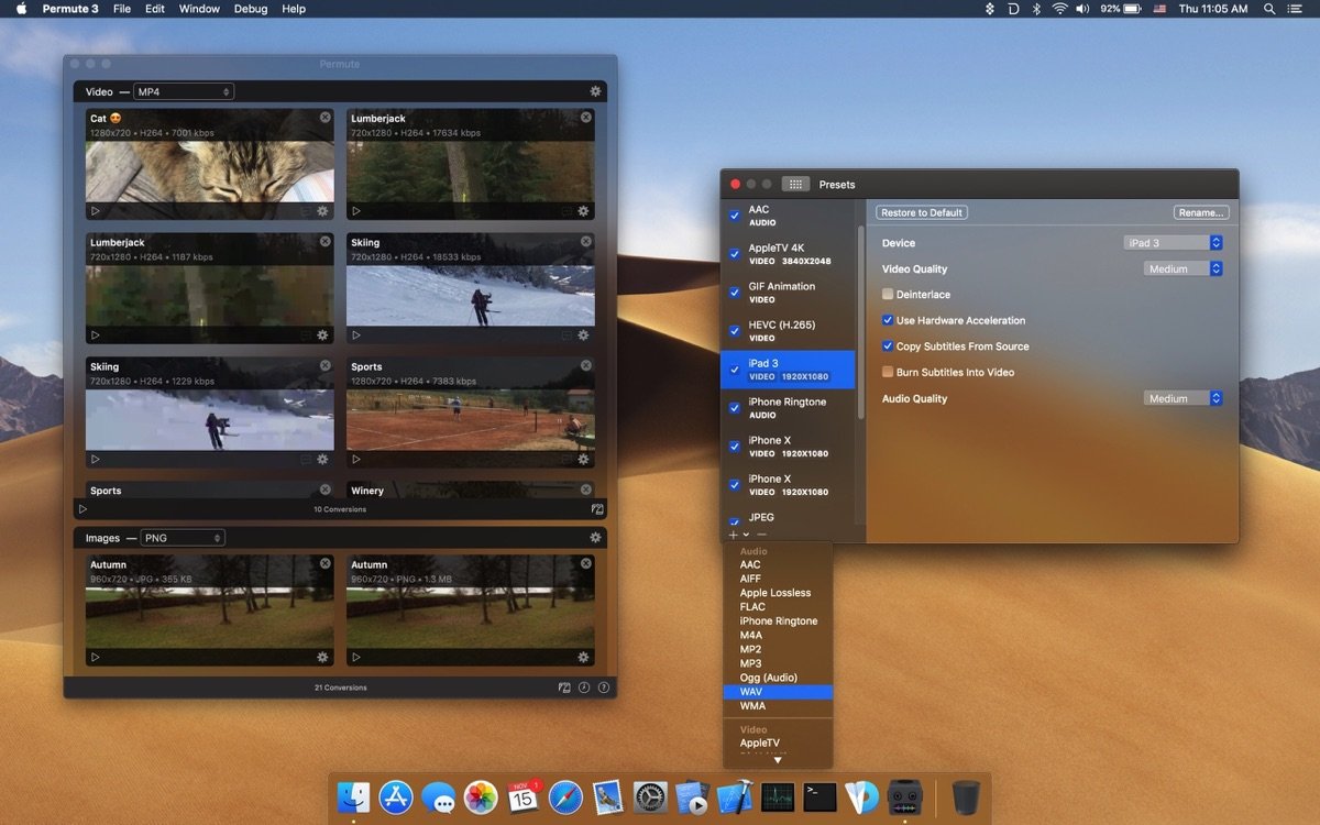 Permute 3 for Mac 是一款专为 macOS 设计的多功能媒体转换软件,它以简洁的拖拽界面和强大性能著称,能轻松处理各种视频、音频和图像文件。无论您需要将家庭录像转为手机兼容格式,还是批量调整图片分辨率,这款媒体转换工具都能提供高效解决方案。通过预设选项和自定义设置,Permute 3 确保转换过程快速无忧,支持几乎所有常见格式,让媒体转换变得简单便捷。作为一款注重用户体验的媒体转换器,它充分利用硬件加速技术,大幅提升转换速度,尤其在处理高清视频时表现突出。