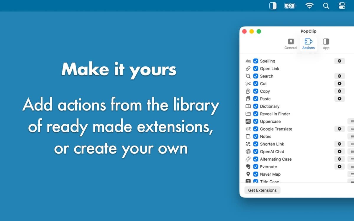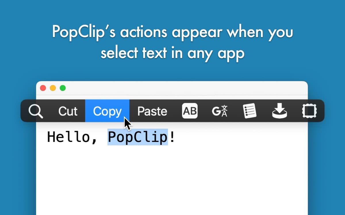 PopClip for Mac 是一款专为 macOS 设计的文本增强应用,它在你选择任何文本时自动弹出简洁菜单,提供一键访问的实用操作。从复制粘贴到网页搜索,再到翻译格式化,这个小巧工具无缝融入日常使用,帮助用户节省时间并提升生产力。无论你是写作者、开发者还是普通办公者,PopClip 都能通过其灵活扩展系统定制专属功能,让文本处理变得直观高效。它支持 macOS 11.7.10 及更高版本,已成为无数 Mac 用户的必备利器。