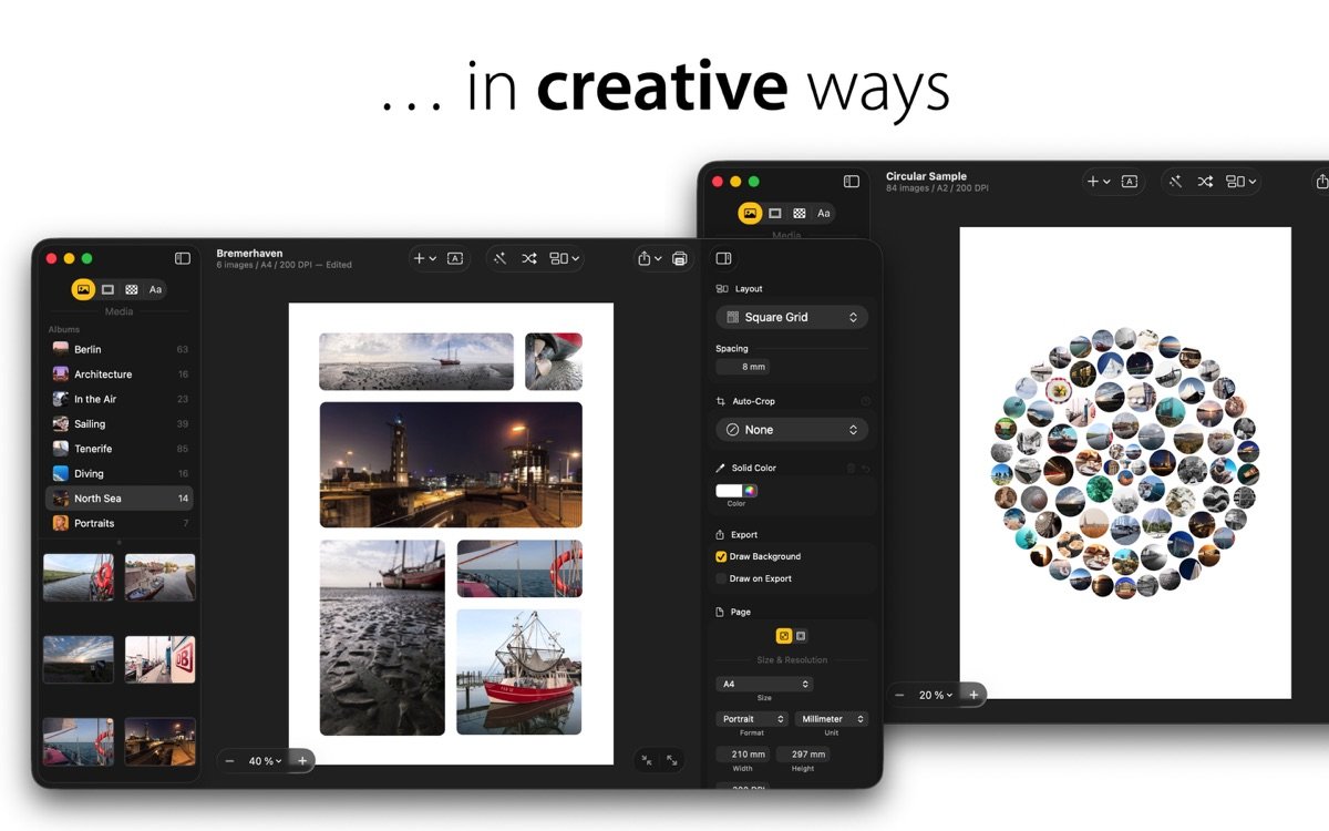 "这款软件使用十年以上,干净高效,灵活性强,简单易上手,能快速创建复杂拼贴。"