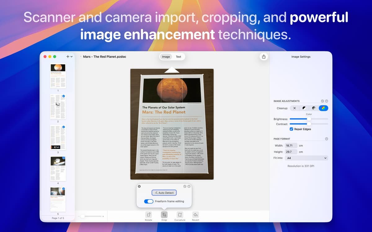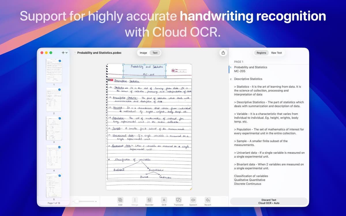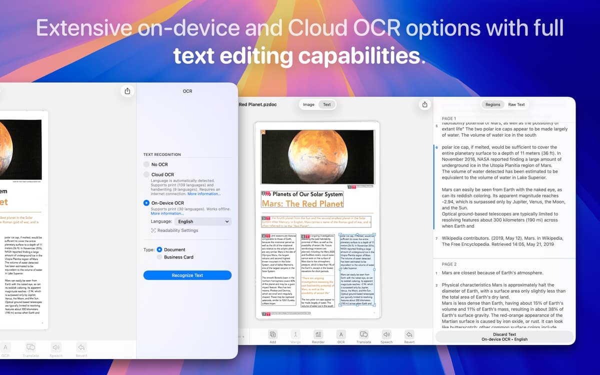 Prizmo for Mac 是一款专业的文档扫描和OCR文本识别应用,专为Mac用户设计,帮助将纸质文件或数字图像转化为可搜索可编辑的PDF或Word文档。它支持多种输入方式,包括扫描仪、相机拍摄或导入现有文件,通过先进的图像处理技术自动校正视角、清理背景并提取文本,适用于发票、收据、手写笔记等多种文档类型。软件界面简洁直观,集成iCloud同步功能,实现跨设备无缝协作,同时提供翻译和语音朗读选项,助力用户高效处理信息并提升生产力。