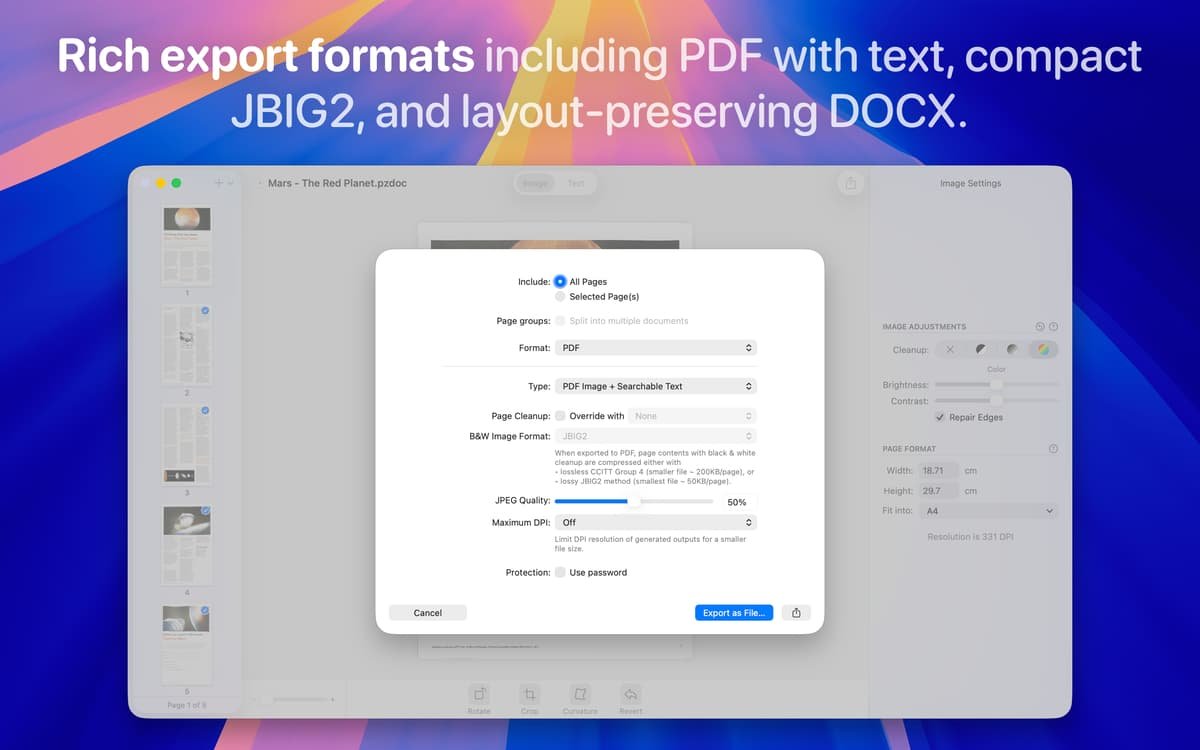 4. 丰富导出选项生成可搜索PDF或布局保留的DOCX文件并支持密码保护。
