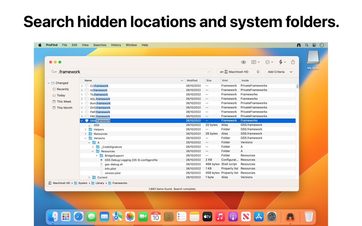 2. 搜索任何磁盘类型,包括Mac本地磁盘、Windows服务器和外部存储,支持隐形文件夹和包内搜索。