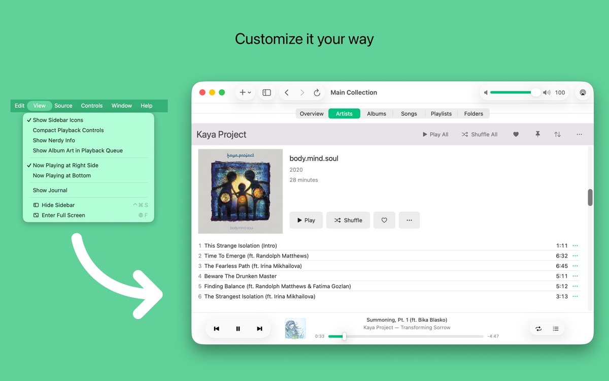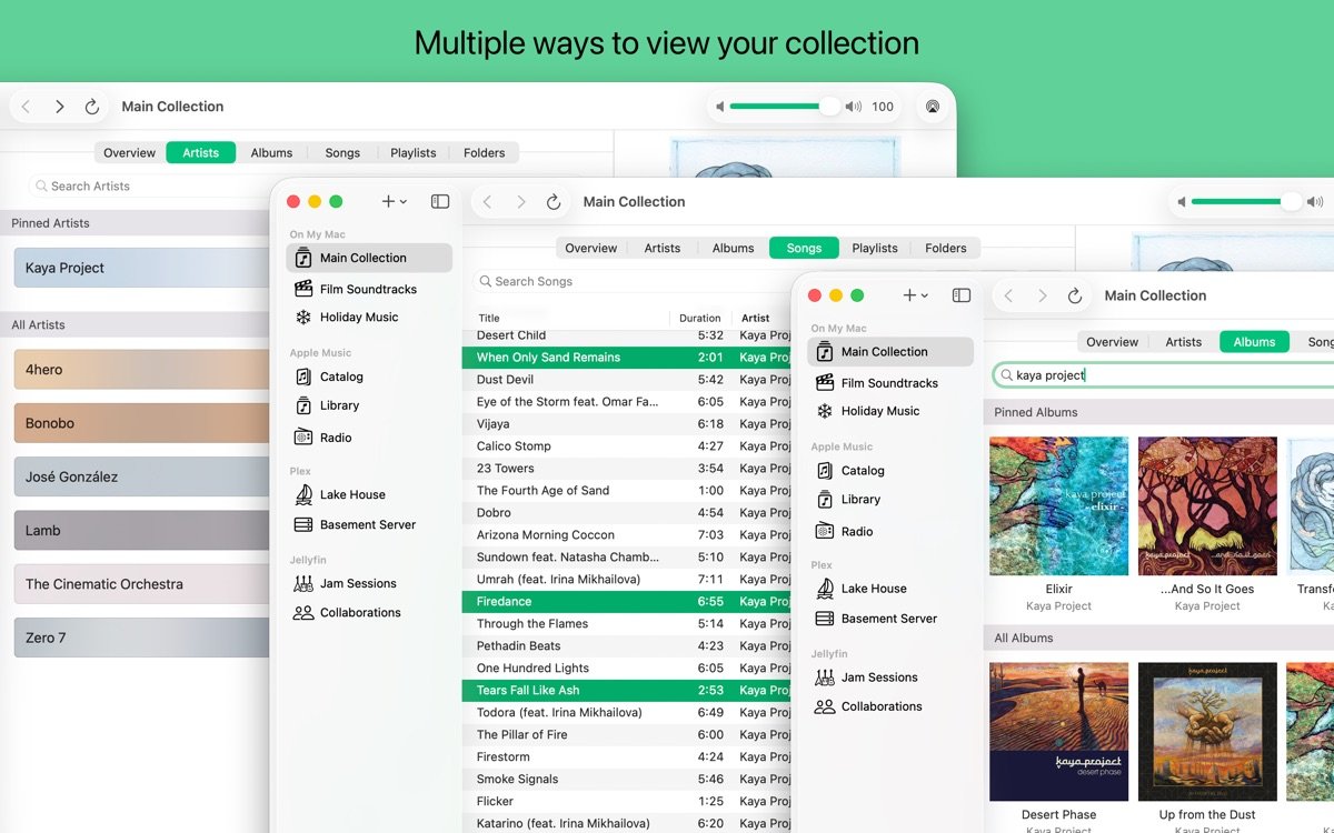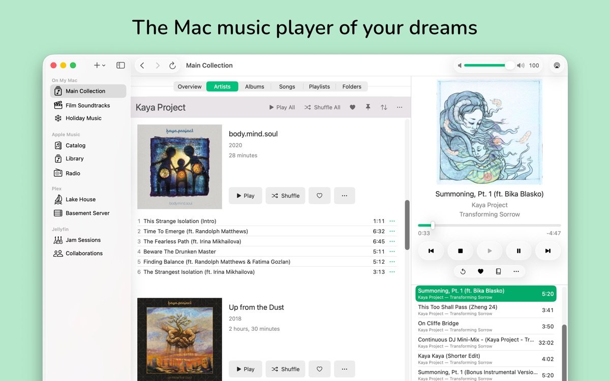 1. 支持多种音乐来源播放,包括本地Mac文件、Apple Music、Navidrome、OpenSubsonic、Plex和Jellyfin,让分散的音乐库一次性管理起来。