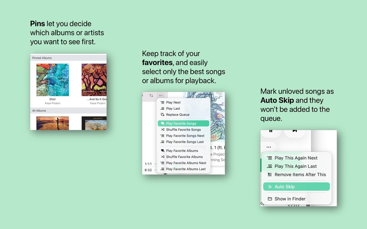 3. Favorites和Auto Skip帮你标记最爱歌曲,还能自动跳过不想听的,播放列表更贴心。