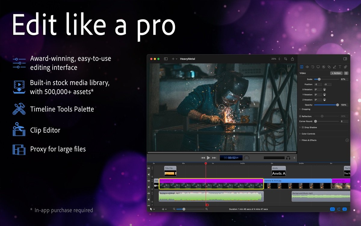 5. 内置库存媒体库,提供数百万图像、音频和视频剪辑资源。