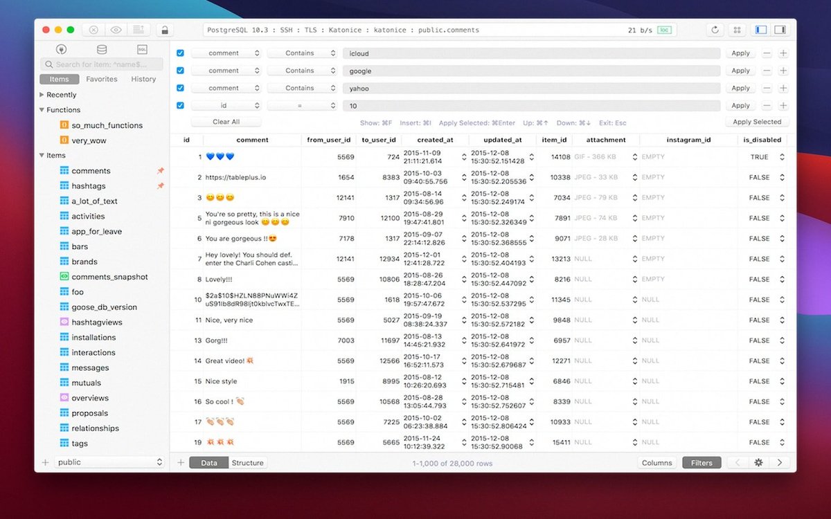 "这是我用过的最好数据库管理GUI工具,尝试过各种选项后还是TablePlus for Mac 最出色。"