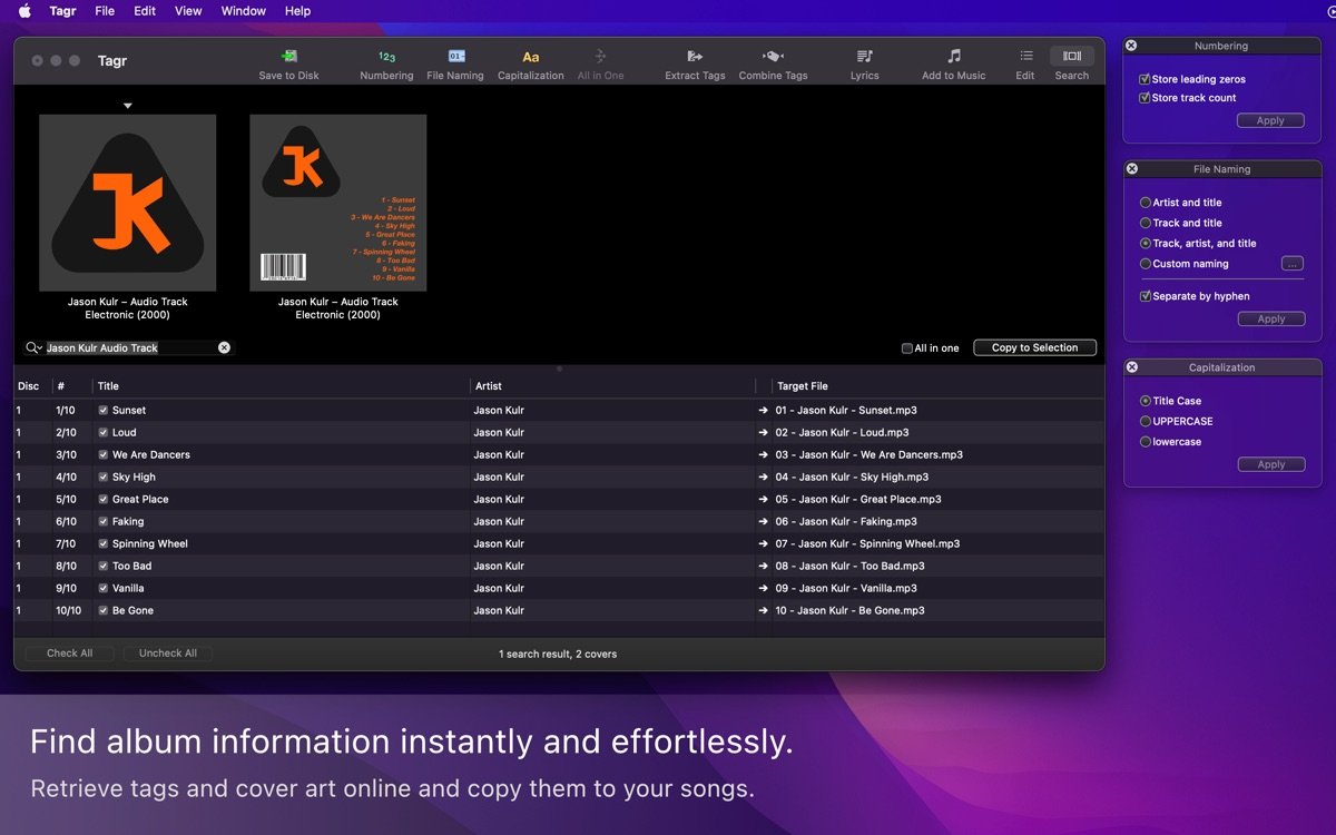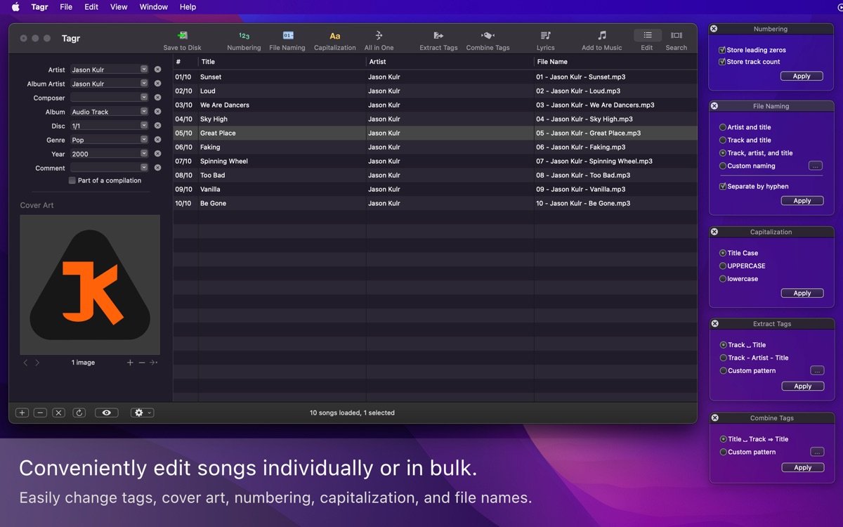 "Tagr for Mac 的界面友好,功能全面,支持多种格式,让音频标签管理变得轻松。"