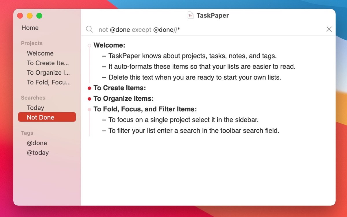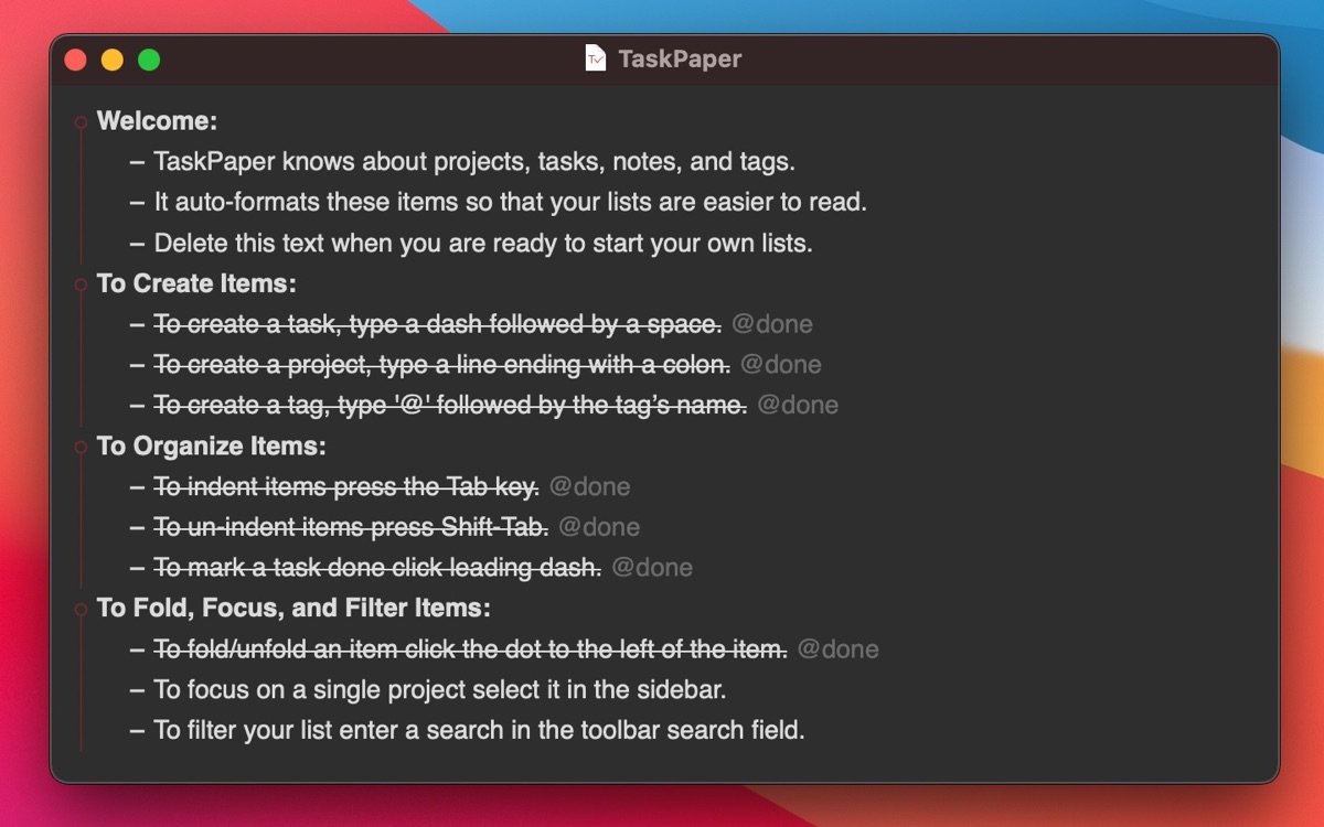 "TaskPaper适合 brainstorm 和无固定日程项目组织,虽然希望添加编号列表,但其过滤和标签功能已让我高效管理多个任务。"