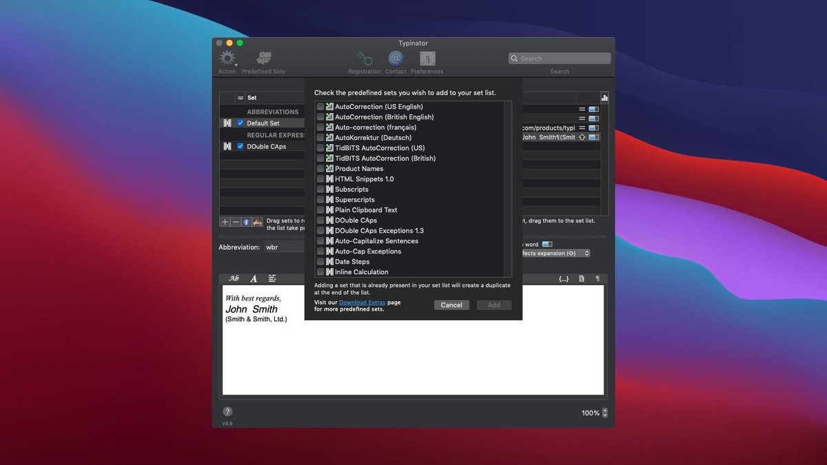 Typinator for Mac 是一款强大的文本扩展工具专为Mac用户设计它允许您创建自定义缩写当您输入这些简短触发词时软件会立即替换成预设的长文本段落HTML代码日期格式图片甚至复杂脚本计算结果这款Mac文本扩展软件工作在系统层面几乎兼容所有应用程序包括网页浏览器邮件客户端文字处理软件和代码编辑器等Typinator强调数据隐私所有片段都本地存储不会上传到第三方服务器同时它提供丰富的内置集合如自动纠错集日期计算集和专业模板集适合各种职业人士使用无论是日常办公还是专业开发都能显著提高生产力。