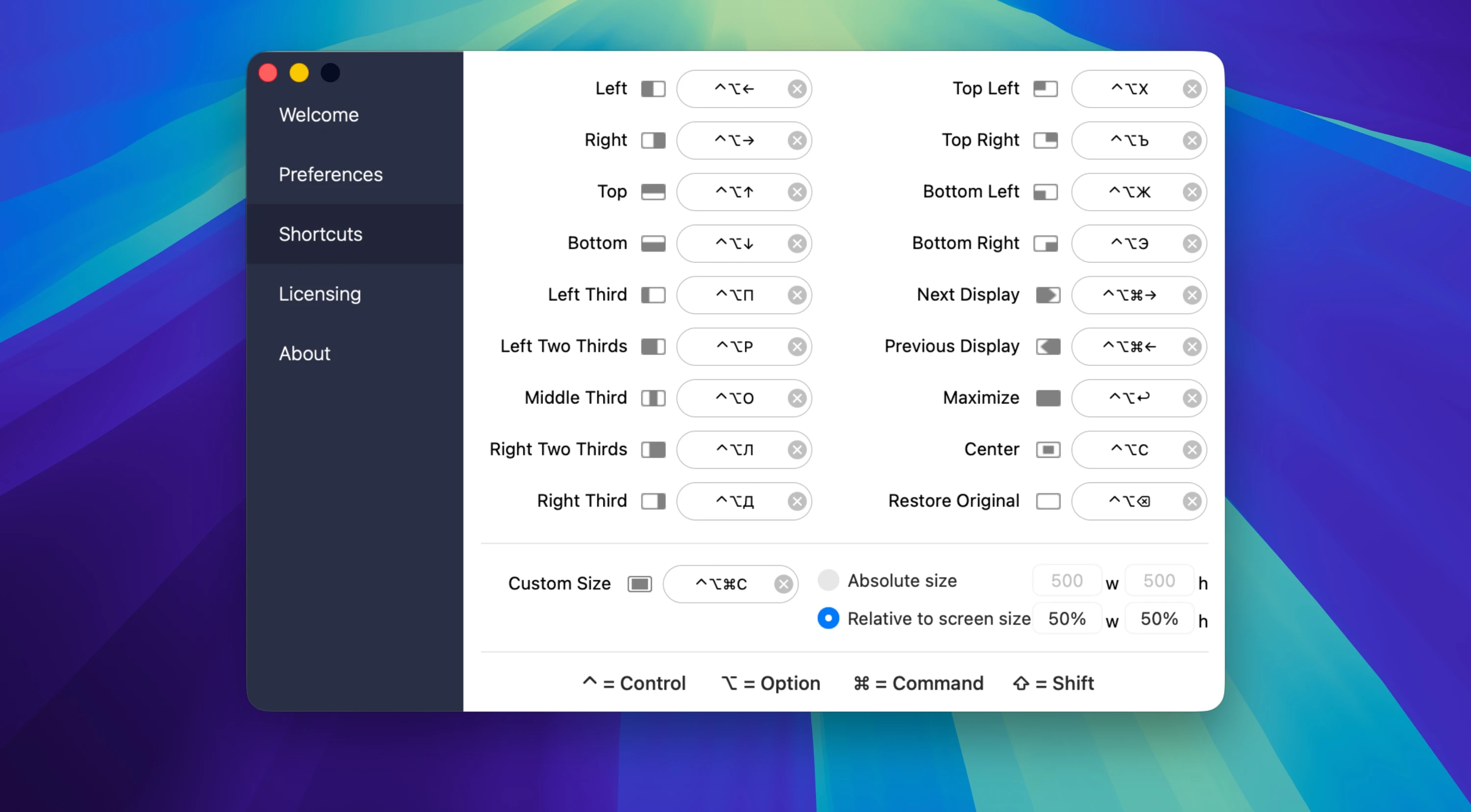 1. 键盘快捷键自定义:用户可以为各种窗口位置设置个性化快捷键,一键实现半屏、四分之一屏、最大化等布局。